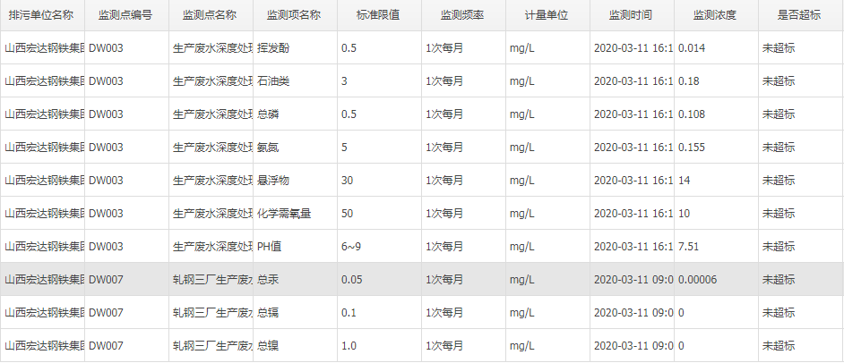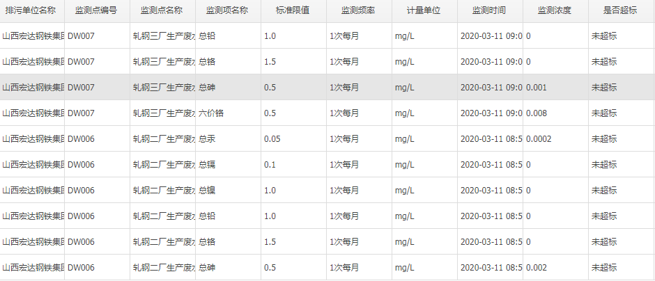 2020年三月份自行监测数据